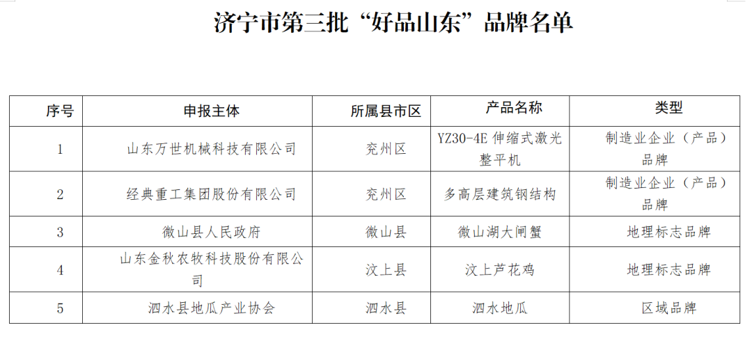 5月10日下午,省人民政府新闻办公室举行中国品牌日系列活动现场新闻发布会,发布第三批“好品山东”品牌名单。经综合评价,从1589个申报主体中择优遴选出了99个重视知识产权和技术创新、市场占有率高、品牌影响力大、行业引领性强、质量文化建设好的“好品山东”品牌,济宁市共有5个品牌入选。截至目前,济宁共有“好品山东”区域品牌28个。