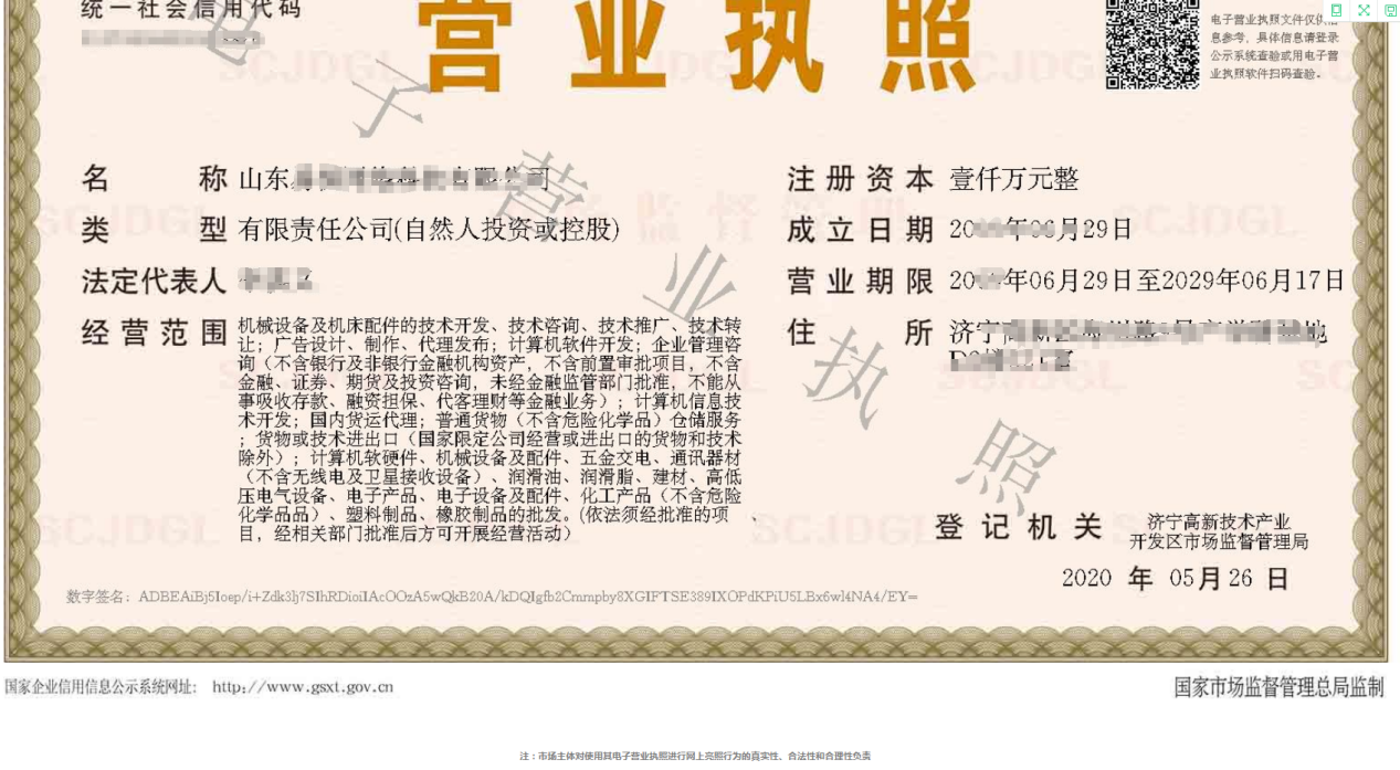 济宁市电商平台电子营业执照应用场景