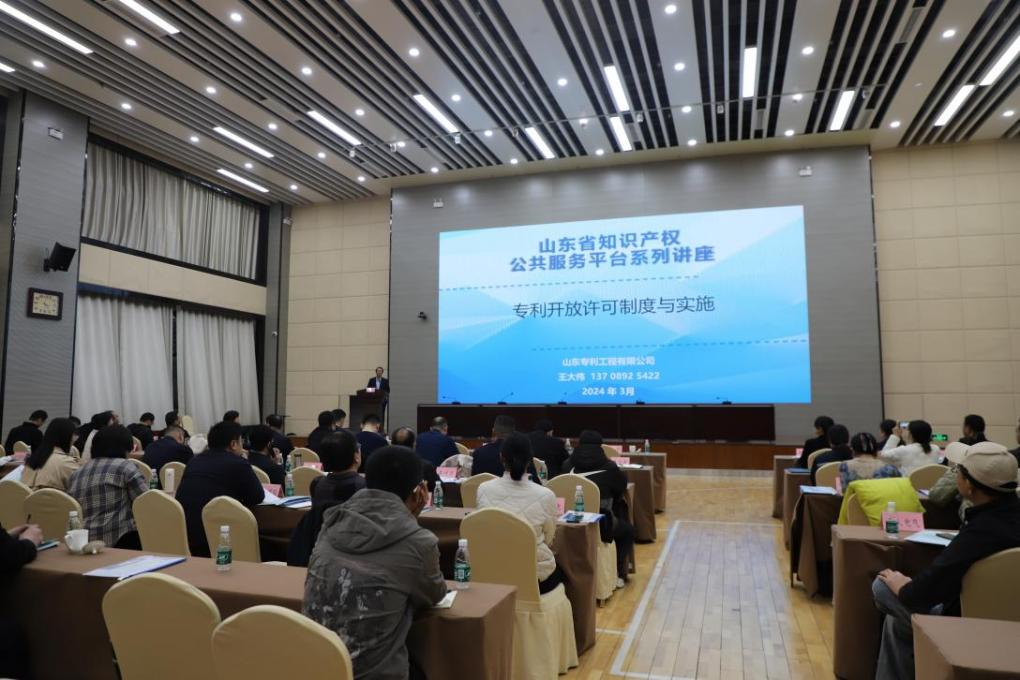 2024年3月26日济宁市重点产业专利开放许可推介会在济宁高新区成功召开。市市场监管局党组书记、局长周庆华,党组成员、副局长刘国柱,市知识产权发展中心副主任、三级调研员仲崇斌,高新区党工委委员、副主任徐廷福出席会议。山东建筑大学、山东科技大学、曲师大、济宁学院等9家高校科研院所,各县市区市场监管局局长、知识产权科负责人和各县市区相关产业企业代表共计110余人参加会议。